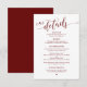 Tarjeta De Recepción Hermoso guión de Borgoña, detalles de nuestro Boda
