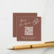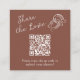 Estas modernas pero elegantes tarjetas de recinto para bodas marrones "compartir el amor" para tu recepción o dentro de tus invitaciones son una manera fácil para que tus invitados suban sus fotos a tu álbum de bodas compartido para tu país, boda de temas occidentales o vaqueros. Estas tarjetas de inserción de código QR presentan un estilo rústico moderno y minimalista, con escritura manuscrita blanca y texto clásico. Un par de herraduras dibujadas a mano aparece en un ilustracion sutil.