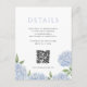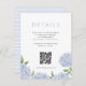 Tarjeta De Recepción Hidrangea azul Detalle simple Código QR