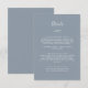 Esta mínima tarjeta de cierre con detalles en blanco y azul es perfecta para una boda elegante. El diseño presenta una sencilla silueta de vegetación blanca sobre un polvoriento fondo azul con un estilo minimalista clásico.