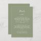 Esta mínima tarjeta de cierre de detalles verdes para sabios es perfecta para un boda boho. El diseño presenta una sencilla silueta de hojas de vegetación en un color verde polvoriento con un estilo de boho de montaña minimalista.