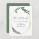 diseño moderno en negrita con un marco geométrico dorado y hermoso follaje de hojas en acuarela. Esta elegante colección rústica es un gran complemento para una boda de otoño o primavera y cuenta con todos los productos que necesitarás para tu día especial: anuncios de guardar, invitaciones, planificadores de mesa y más.