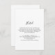 Esta sencilla tarjeta de alojamiento de hotel minimalista es perfecta para un boda moderno. El diseño, sencillo y elegante, presenta una tipografía de escritura clásica y elegante en blanco y negro.