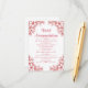 Tarjeta De Recepción Hotel Red Ornate Boda