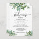 La follaje de acuarela de vegetación adorna esta tarjeta para dar la bienvenida a sus invitados de boda y hacerles saber sobre sus eventos planeados. Una tarjeta compacta que se puede agregar a una bolsa de favor con una fuente moderna (Las palabras de guión no son editables). Nuestra ilustración única.