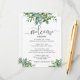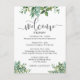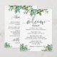 La vegetación con acuarela adorna esta tarjeta para dar la bienvenida a sus invitados a la boda y hacerles saber sobre los eventos planeados. Una tarjeta compacta que se puede agregar a una bolsa de regalo con una fuente moderna (Las palabras con guión no son editables). Nuestra ilustración única.