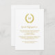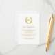 Estas elegantes tarjetas de inserción de información sobre invitados de boda incluyen una flauta de laurel de Relieve metalizado dorado con su monograma dentro. Tu texto tiene un color de oro similar. El fondo es blanco. Tenga en cuenta que el efecto de Relieve metalizado dorado está impreso y que la tarjeta no contiene Relieve metalizado oro real.