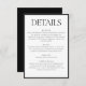 Tarjeta de información sobre detalles del Boda blanco negro clásico