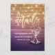 Direcciones de boda / Alojamiento y tarjetas de información / Tarjeta de información de invitado / Tarjetas de detalles de Boda Plantillas - Guión de letras elegantes, Vintage Champagne Glasses y String Lights on Rustic Wood Background. ¡Todo el estilo de texto, colores, tamaños se pueden modificar para adaptarlo a sus necesidades!