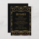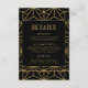 Tarjeta de información de boda: no olvide esta tarjeta útil con todos sus detalles importantes de boda como ubicación, alojamiento, transporte, etc... Viaje a los años 20 con esta suite boda de estilo Art Déco. Tipografía retro simple pero elegante, negra y dorada, personalizable completo si se desea cambiar el color del fondo o del texto. También puede quitar fácilmente el diseño de fondo.