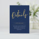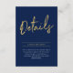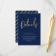 Añada información detallada en esta tarjeta de gabinete sencilla y elegante. Este diseño presenta un guión de pincel de moda con un diseño limpio con una combinación de color azul marino y oro. En mi tienda BaraBomDesign hay disponibles una invitación y suministros de fiesta coincidentes.