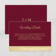 Tarjetas de inserción de información de detalles de boda elegantes y modernas con topografía dorada y borgoña, marsala, granate, rojo intenso. El color de fondo se puede cambiar. Plantillas editables: agregue su texto. Contacte al diseñador para otras variaciones. Perfecto para la colección de bodas de otoño.
