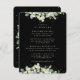 Una tarjeta de enclosure negra plana de itinerario/ horario de la boda para delinear todos los eventos de fin de semana de su boda. Con una elegante rama de snowberries y eucalipto pintados a mano en la parte delantera y una corona en la parte posterior de la tarjeta. Todo el texto es totalmente editable y los puntos dispersos en la parte delantera y trasera se pueden eliminar antes de realizar el pedido si lo prefiere. Esta tarjeta está disponible con diseños botánicos alternativos y en diferentes colores. Por favor, vea la Colección en mi tienda para ver todas las opciones y artículos coordinados.