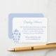 Este diseño clásico de tarjeta de cierre para ducha de bebé o ducha de novia presenta un jengibre azul y blanco con un monograma de letra única. Este elemento de acuarela fue originalmente pintado a mano por mí antes de ser escaneado en forma digital. Se muestra aquí para una ducha de exhibición, pero todo el texto se puede personalizar según tus necesidades. También puedes agregar o eliminar campos de texto desde dentro de la herramienta de diseño.
