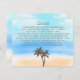 Elegante y muy moda, estas tarjetas acuarelas de detalle de bodas de playa harán las tarjetas de inserción perfectas para cualquier novia y novio que se desee. El diseño está formado por palmeras tropicales sobre un bonito fondo acuático de arena suave, mar azul frío y un impresionante cielo turquesa. ¡Perfecto para cualquier celebración en la playa! Estas tarjetas de inserción se pueden personalizar para tu ocasión especial y harían el inserto perfecto para cualquier boda en la playa, ducha de novia, fiesta de compromiso, fiesta de cumpleaños y mucho, mucho más. VER ELEMENTOS DE COINCIDENCIA PARA ESTA COLECCIÓN