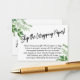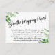 Si usted está hospedando una ducha sin regalo para una futura novia, esta tarjeta simple y versátil podría ser la elección para usted. Utilizando un tipo de letra de guión moderno y manuscrito, primero añadí un gráfico de encabezado que dice "¡Salte el papel de ajuste!" en la parte delantera, y "De" y "De" en el lado de la etiqueta de regalo. Las esquinas están acentuadas por una vegetación acuática sencilla. Se ha creado un campo de plantilla para ofrecer instrucciones a los clientes que no cumplan con su regalo; por favor, no dude en cambiar la redacción si fuera necesario. El tipo de letra sans-serif utilizado para las instrucciones se puede modificar según se considere oportuno. // 105 //