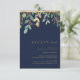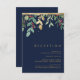 La vegetación Navidad moderna | la tarjeta del gabinete de recepción naval es perfecta para tu sencilla boda de invierno. Diseñado con Relieve metalizado geométrico falso oro y acuarela botánica minimalista con toques de eucalipto verde y winterberry rojo. Todo sobre un fondo marino clásico. Estos elementos le confieren un toque moderno y elegante que le confiere un toque de elegancia. Puedes personalizar con tus propias fotos o mantenerlo tal cual. ¡Asegúrate de mirar el resto de la colección para completar tu tema boda!