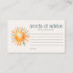 Comparte sabiduría y ánimo sinceros con esta dulce tarjeta de gabinete "Palabras de Consejos" de la colección Here Comes the Son baby ducha. Diseñada con un suave sol acuático y una caprichosa tipografía de inspiración retro, esta soleada tarjeta invita a los clientes a dejar notas para los futuros padres que apreciarán en los años venideros. Perfecto como una actividad durante la ducha o para incluir en su suite de invitados, es una forma cuidadosa de hacer que los seres queridos participen en el viaje de crianza.