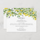 Summery, simple y elegante, esta tarjeta de gabinete de detalles bodas con tema de limón cuenta con ramas de limoneros de colores vivos, flores blancas y mariposas de verano alrededor. Puede personalizar de todos los detalles del texto y de la ubicación del gráfico a sus necesidades específicas.