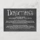 Encantadoras tarjetas de ubicación y dirección de boda en pizarra para una ocasión chic casual presentan fuentes de estilo manuscritas y diseños de rollo que tienen una apariencia de tiza blanca sobre un fondo que tiene una apariencia texturizada de pizarra negra rústica.