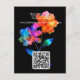 This enclosure card from the Petals & Pride collection is a vibrant and practical way to share your wedding details with guests. Set against a rich black background, radiant rainbow florals bloom in translucent layers of pink, orange, yellow, green, and blue—symbolizing unity, joy, and pride. The layout includes a clear invitation to visit your wedding website, along with a scannable QR code for instant access to event information, travel tips, registry links, and more. Perfect for LGBTQ+ celebrations, this card blends expressive design with modern convenience. Matching items available to complete your suite with pride and style.