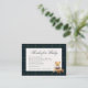 Celebre la llegada de su pequeña con encanto intemporal utilizando nuestra tarjeta Bear Books para el Bebé, diseñada para añadir un toque cuidado y elegante a su ducha de bebé. Con un delicioso ilustracion acuático de un oso de peluche con un clásico traje de polo azul marino, esta carta capta el corazón de la sofisticación de los adormidera y el calor suave. El color azul profundo y el escote verde de fondo aportan una capa de textura lujosa que evoca el estilo patrimonial con un toque moderno. El texto está bellamente arreglado, emparejando caligrafía elegante con un refinado tipo de letra serif, marcando el equilibrio perfecto entre encanto y sofisticación. Animar a los huéspedes a que ayuden a construir la primera biblioteca del bebé con una historia muy apreciada en lugar de una tarjeta. Ya sea nuevo o bien amado, cada libro se convierte en parte de una atesorada colección llena de amor y recuerdos. Esta tarjeta combina significado y estilo en un inolvidable toque de alegría.