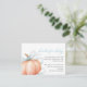 Esta elegante y encantadora ducha de bebé Books para la tarjeta de gabinete para bebés cuenta con un hermoso ilustracion acuático de una calabaza con una delicada cinta azul, perfecto para celebrar la llegada de un pequeño en la temporada de otoño.