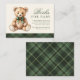Agregue un toque de elegancia clásica a su baby shower con esta tarjeta de inclusión de Libros para Bebé con Oso de Peluche de Cuadro Vintage. Con un cálido fondo crema y un borde de tartán verde con costuras doradas falsas en la parte inferior, este diseño combina hermosamente el estilo vintage atemporal con el encanto moderno.
