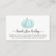 Una bonita tarjeta de envoltura de invitación a la ducha para bebés que incluye una acuarela azul pastel de una calabaza y "libros para bebés" en un elegante bonito de escritura gris suave con toques. Personalice los libros para la petición de bebés en una tipografía simple y gris.