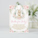 Este elegante diseño cuenta con un bonito conejito de bebés adornado con hermosas flores rosas y un paisaje de color acuático verde