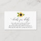 Una tarjeta de inserción para la ducha para bebés solicitada por un libro. Con un girasol y un poema: "UNA PEQUEÑA PEQUEÑA PETICIÓN, ESPERAMOS QUE NO SEA DEMASIADO DIFÍCIL POR FAVOR TRAER UN LIBRO EN LUGAR DE UNA TARJETA QUE ELLOS CRIQUEN EL LIBRO, BIEN AMADOS O NUEVOS POR FAVOR, ¡RÓTULO EL INTERIOR CON UN MENSAJE DE USTED!"