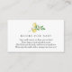 Una tarjeta de inserción para la ducha para bebés solicitada por un libro. Con ramas de limón acuarela y vegetación con poema: "UNA PEQUEÑA PEQUEÑA PETICIÓN, ESPERAMOS QUE NO SEA DEMASIADO DIFÍCIL POR FAVOR TRAER UN LIBRO EN LUGAR DE UNA TARJETA QUE ELLOS PRESENTARÁN EL LIBRO, BIEN AMADOS O NUEVAS MARCAS, POR FAVOR, ¡RÓTULO EL INTERIOR CON UN MENSAJE!"