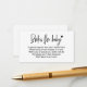 Animar a los huéspedes a que ayuden a construir la primera biblioteca del bebé con estas tarjetas de ducha de personalizable "Books for Baby". Con un guión moderno con un acento cardíaco dulce, estas tarjetas de solicitud invitan a la familia y amigos a traer un libro muy apreciado en lugar de una tarjeta. Personalice los detalles de la ducha de bebé para crear un conservador significativo que se empareje maravillosamente con las invitaciones. Una forma cuidadosa de empezar una colección de historias y recuerdos para el pequeño. Personalizable de vuelta para incluir la fecha y el nombre del evento.