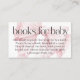 Una dulce tarjeta de gabinete de "libros para bebés" para añadir a las invitaciones de tu ducha de bebé. Cada cliente trae un libro para el bebé a la ducha en lugar de una tarjeta. El libro puede ser nuevo o suavemente utilizado, dando un buen comienzo a la construcción de una pequeña biblioteca para el bebé. Este diseño femenino tiene una bonita proa rosa inclinada a un lado con un fondo de banda de toldo rosa y blanco en el reverso.
