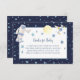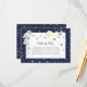 Espacio exterior Books For Baby gabinete con estrellas azules en el fondo azul de la medianoche. Cada tarjeta tiene un hombre espacial, una nave espacial y una luna amarilla pálida sobre fondo blanco. Adjunte el sobre con invitaciones coincidentes.