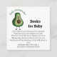 Aprovecha la alegría de contar historias y de aprender temprano con nuestras tarjetas de presentación "Books for Baby", diseñadas especialmente para nuestro Baby Shower 'Holy Guacamole'. Con un delicioso aguacate precoz en la parte delantera y un lúdico aguacate en la parte trasera, estas tarjetas son una invitación a nuestros invitados a contribuir a la incipiente biblioteca de nuestro bebé.