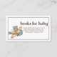 Invite a los huéspedes a que ayuden a construir una maravillosa biblioteca para su pequeña con estas adorables tarjetas de presentación de "libros para bebés". Con un ilustracion acuarela de un lindo piloto de oso de peluche en su vintage plano azul recortado, estas encantadoras tarjetas complementan perfectamente una ducha de bebé. El mensaje anima a los clientes a traer un libro en lugar de una tarjeta, creando una colección especial de historias llenas de amor y recuerdos para tu pequeño.