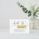 Esta tarjeta de inserción "Books for baby" es perfecta para un género dulce revelar una ducha de bebé. Hermosa caligrafía con detalles falsos de purpurina dorado. El fondo perfecto para tu inserción de la invitación a la ducha para bebés, solicitando libros en lugar de tarjetas para el bebé que pronto será leído.