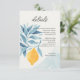 Tarjeta De Recepción Limón con hojas azules ilustracion botánico