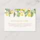 Asegúrese de que sus invitados tengan todos los detalles que necesitan con la Tarjeta de Encierre de Limones Florales Acuarela. Con una mezcla refinada de limones acuarela y flores crema, este diseño une su evento con sofisticación. Perfecto para direcciones, detalles de registro o mensajes especiales, esta tarjeta mantiene su evento organizado y con estilo. Mejore la planificación de su ducha nupcial con este toque esencial de encanto.