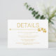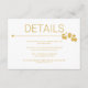 Esta tarjeta de gabinete Details es una elección elegante para cualquier boda, con una línea dorada con una rama y hojas en un lado y un punto único en el otro, colocada sobre un fondo blanco. El reverso presenta un patrón diagonal de personalizable con los nombres de la pareja en oro, añadiendo un toque elegante. Si los nombres ocupan más o menos espacio, simplemente ajuste el tamaño del tipo de letra en consecuencia.