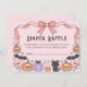 Añade un toque encantador y espeluznante a tu ducha de bebé con esta tarjeta de pañales pequeños. Diseñada en un suave estilo de coqueta con arcos rosa pastel, un bonito fantasma y un caprichoso estilo de Halloween, esta carta invita a sus huéspedes a traer un paquete de pañales para una oportunidad de ganar un premio dulce. Perfectamente emparejado con tu tema de Baby Shower Little Boo Halloween.
