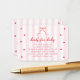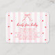 Celebrate the upcoming arrival of your little one with this charming coquette "Little Sweetheart" baby shower Books for Baby Enclosure Card! Perfect for a sweet and sophisticated gathering, this invitation features delightful pink stripes adorned with a coquette ribbon bow, setting the tone for a lovely event.