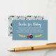 Este bonito y rústico diseño de la tarjeta de gabinete de la ducha de bebé, de color azul, incluye ilustraciones de la vida en la granja, incluido un tractor, con un patrón de granja en la parte trasera. Hay espacio para pedir a los clientes que traigan un libro para añadirlo a la biblioteca del recién nacido, que usen el poema que se les ha proporcionado o que creen su propio mensaje.