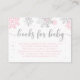 Los libros modernos para la ducha de bebé para la tarjeta de bebé incluyen gráficos de copos de nieve de purpurina rosa y plata de invierno con el texto "libros para bebé"