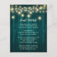 Proporcione a sus invitados con detalles importantes con esta tarjeta de recinto de boda rústica verde azul con luces de cuerda en un fondo de madera de granero. Artículos coincidentes disponibles.