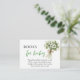 This enclosure card politely invites guests to bring a children’s book instead of a traditional greeting card, creating a special library for the baby filled with love and personal messages from friends and family. The soft green clover bouquet and minimalist typography create a timeless and elegant look that perfectly complements lucky charm baby shower invitations and décor.