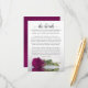 Esta hermosa tarjeta de gabinete boda está diseñada para darle espacio adicional para cualquier información que sus huéspedes puedan necesitar, incluyendo sitio web, registro, recepción, viajes, alojamiento o cualquier otro detalle. La tarjeta presenta un diseño magnífico con un único rosa de color púrpura de cassis reflectante y un título de caligrafía de escritura de encaje que dice "los detalles". La parte posterior es de color magenta o berry de mármol.