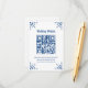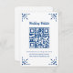 Esta tarjeta de gabinete boda presenta detalles inspirados en papel picado y un código QR en azul sobre un fondo blanco. Este diseño se coordina con nuestra colección Papel Picado. Vea la colección para coordinar elementos. Todos los colores de este diseño son personalizable mediante la herramienta de edición.