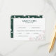 Una carta RSVP simple pero elegante con preferencias de comida que consiste en un magnolia blanco y un borde eucalipto sobre un fondo verde esmeralda. Para preguntas o solicitudes, por favor contáctenos a través del chat.